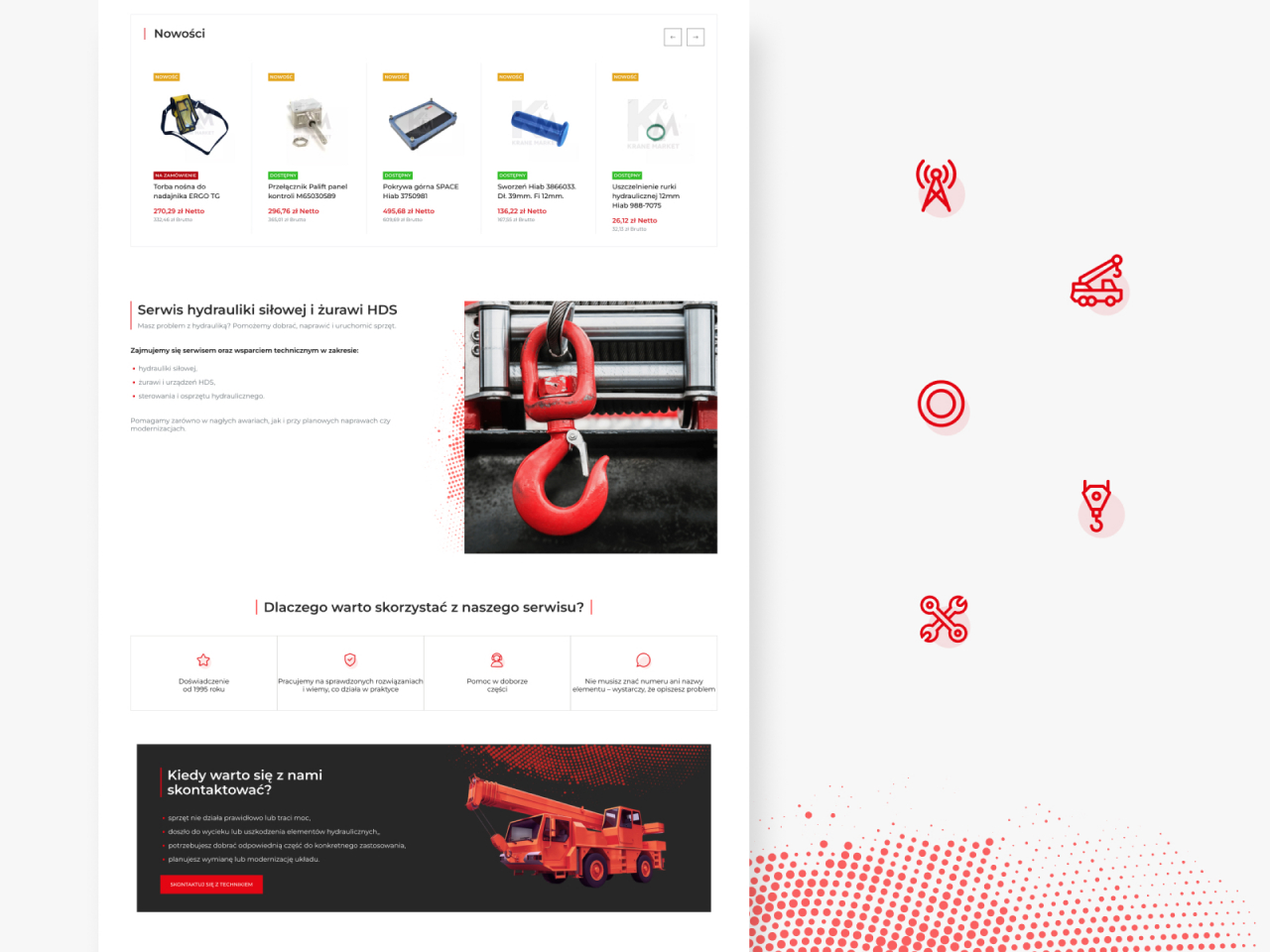 Klient zgłosił się do nas z działającym sklepem internetowym, który jednak nie oddawał potencjału marki. Kranemarket jest dobrze rozpoznawalny w swojej branży i cieszy się zaufaniem klientów, natomiast strona internetowa nie prezentowała tej pozycji w odpowiedni sposób. Sklep był mało intuicyjny, a sposób prezentacji oferty nie pomagał użytkownikom szybko zrozumieć, jakie produkty są dostępne i dlaczego warto wybrać właśnie tę firmę.