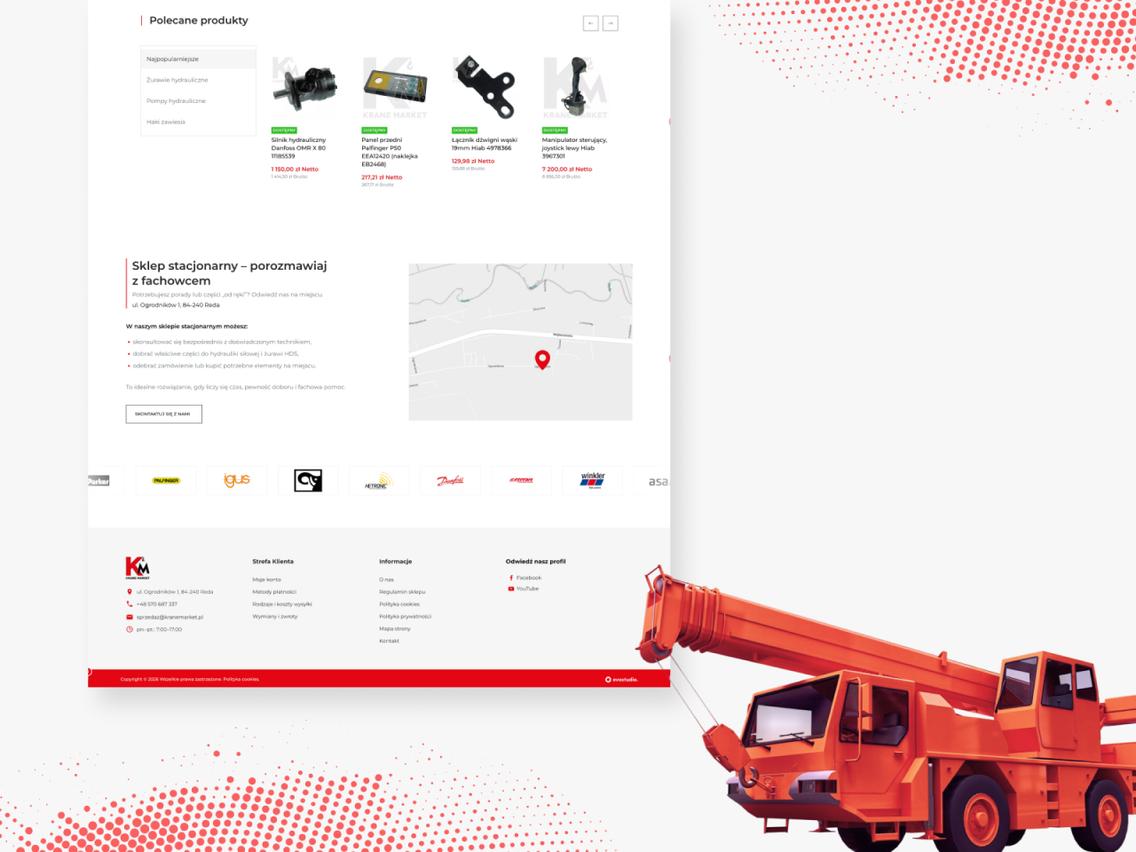 Modernizacja sklepu Kranemarket uporządkowała ofertę i poprawiła UX, dzięki czemu użytkownicy szybciej znajdują potrzebne produkty.